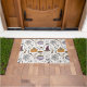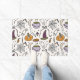このコテージのコアハロウィーンのdoormatでこの不気味な季節を扱うゲストを歓迎パターン(の模様が)あるトリック。カボチャ、魔女の帽子、箒、大釜、クモの巣、幽霊の手描きイラストを搭載。アート&デザインバイアニー・モンゴメリーデザイン。
