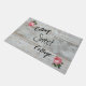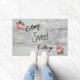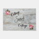 このコテージドアマットは、ピンクのバラと白く洗った木の背景に文字のコテージの甘いフェイクコテージを備えかわいらしている。お客様のコテージまたはヴィンテージデコールに最適。