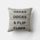 このおもしろい屋外の枕は、素朴な外観の古い看板の上に引用文「デッキの波止場とビーチサンダル」をアクセントにし、ボート、コテージ、ビーチハウス、デッキやプールサイドに最適である。
