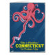 コネチカットUSAタコのヴィンテージ旅行ポスター。『憲法州』アメリカの漫画ポスター。