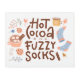 冬の装飾や魅力的贈り物に最適な、このホットココアとファジーソックスのデザインで居心地の良い。暖かい飲み物、ファジーな靴下、季節の要素を備えたグラフィックは、寒い月の間の心地よいの本質を捉えている。