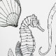 コースタルブラック&ホワイトリーネアートシーライフパターン 壁紙