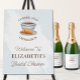 季節を問わないコーヒーとクロワッサン ブライダルシャワー。背景は淡い青と白で少しダメージ加工