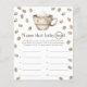 水色のコーヒー豆とコーヒーと豆のパターンのカップ。コーヒー醸造ベビーシャワー。コーヒーをテーマにした赤ちゃんシャワー。文字とコーヒーリングとコーヒー豆とコーヒーのカップ。