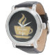 コーヒー好きの腕時計コーヒーの新鮮なカップのイメージをスタイルに何時であるかを知らせる。デザイン男性へまたは女性と言う"Coffee Time"
