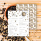 水色のコーヒー豆とコーヒーと豆のパターンのカップ。コーヒー醸造ベビーシャワー。コーヒーをテーマにした赤ちゃんシャワー。文字とコーヒーリングとコーヒー豆とコーヒーのカップ。回答鍵: 1.d 2.d.午前4時。5.c.6.a7.b.8.c.9.c.10.b.