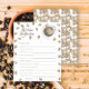 水色のコーヒー豆とコーヒーと豆のパターンのカップ。コーヒー醸造ベビーシャワー。コーヒーをテーマにした赤ちゃんシャワー。文字とコーヒーリングとコーヒー豆とコーヒーのカップ。