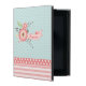 iPad 2/3/4フォリオスタイルケースかわいらしは、ケースの上部に小さな青と茶色の水玉模様パターンを持ち、下部にコーラルピンクと白の水玉模様パターストライプンとパターンを持つ。サンゴのフローラのバナーの飾甘いグラフィックスの前面。バナー上の文字を自分のために、または彼女のためのギフト魅力的アイディアとしてパーソナライズ。
