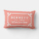 スタイリッシュlumbarデザインは白いギリシャ語の鍵幾何学的なフレームデザインとモノグラムを備え縁どてパーソナライズされた、年の確立日または家族の姓と一緒に可能なモノグラム(年または年の最初の子供は結婚した1つだった)を確立した。カスタマイズコーラルオレンジ/ピンク色の背景を屋外の装飾と調整する。