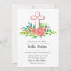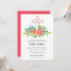 白と生きたサンゴの十字架は、サンゴ、黄色とオレンジの花と緑に囲まれ、ファースト聖餐会、《キリスト教》洗礼式や命名式、バプテスマ、献身招待状に最適。お子様の名前とイベント詳細でパーソナライズ