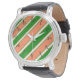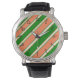 サンゴと緑の対角の時計はストライプファッションを表はっきりした現する。