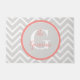Coral Chevron Monogram感じ Doormatで玄関にウェルカムを追加。Doormatデザインは、サンゴに輪郭を描いた円のエンブレムを持つ明るい灰色のシェブロン模様を特徴としている。このデザインで利用可能な追加アイテム。パーソナ連絡リゼーションのサポートは私に直接願う。