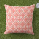 白いスタイリッシュモロッコのモダン装飾的なクアトレフォイルの模様を特徴とする枕。カスタマイズコーラルオレンジ/ピンク色の背景を屋外の装飾と調整する。