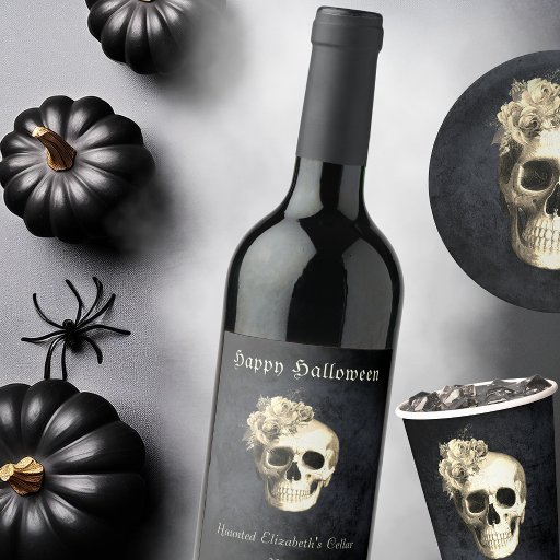 ハロウィンクラシックをテーマにしたゴシッエレガントクのグラムスカルデザインを使用したの丸いシール。黒い質感の背景に白いフローラスカルを備えている。そのスカルは美しい白いバラがアクセントになっている。これらのシールは汎用性があり、封筒のシールやパーティの好み飾、または単にゴシック風のガラスのtouchを様々なアイテムに追加するために使用することができる。