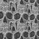 この壁紙はゴシックグランジ様式の白黒スカルヘッドのクローズアップデザインを特徴とする。不気味怖い、怖い、悪い、悪意のある、不気味な、クール、トレンディー、ユニーク、怖いハロウィンのパタモダンーン。Image copyright Marg Seregelyi Photography.