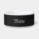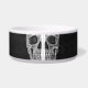 ゴシッカッコいいクのマカベル白黒デザイン。テクスチグランジープリント半スカル頭ドッグ水鉢。不気味不気味で邪悪で邪悪なおカスタム客様のニーズに合った文字。トレンディーユニーク、モダン、怖いハロウィンインスパイアのペット用品。Image copyright Marg Seregelyi Photography.