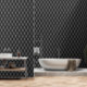 ゴシックエレガンスで壁をアクセントこのマクシマリストのスタイル壁紙。黒い木炭の黒の「フェイク」張りプリント模様がある。