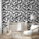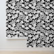 黒に不気味な白いスケルトンのスカルを特徴とするゴシック風のテーマの壁紙。ハロウィン飾シーズンの特長壁に最適