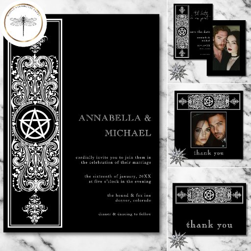 ゴシック様式ペンタグラムスター白黒結婚ズ 招待状