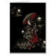 これらのグラフィックのティーにおよび他の項目にパラソルを握っている芸者のスカルを搭載するgothy色彩の配合のイメージがあります