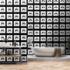この壁素晴らし紙は、お互いに向き合って見える美しい黒いカラスのペアのデジタルアート画像を備えキスをするている。ビーズは黒く、ビーズやアクセサリーはビーズやアクセサリーで覆われている。鳥の上下に黒い背景に白い星がある。幸せカスタムなカップルの名前とメッセージを含めることができるメッセージ文字がある。