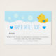 男の子だ!バブルバスかアヒルをテーマにしたベビースシャワーを計画しているのか?ゴムダッキー(アヒルちゃん)男の子のシャワーおむつラッフルカードは、男の子のための赤ちゃんシャワーのための愛らしい選択である。バスタブの泡に囲まれた彼の翼に青いハートを持つ甘い黄色のアヒルを特徴とする。このラッフルカー救済ドは、あなたの赤ちゃんシャワーにその特別なtouchを追加する。エンチャント忘れファンシーデザイン社が設計した調整製品と一緒にパーティーテーマを結び付けないこと。