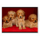 赤い背景に寄り添った愛らしいゴルデンドルの子犬の写真は、私の「ゴルデンドル子犬の任意の大事な行事カード」の主題である。カードの内部は意図的に離れする空白のため、どの大事な行事にも使用できる。