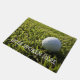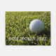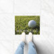 ゴルフおもしろいテーマホーム歓迎マットの芝生の上にゴルフボールのイメージとユーモアのあることわざゴルフこ話ここ。男のためのユーモアのある引っ越し祝いパーティーギフトとしてデザインまたはゴルフファンのためのあなたの家の前にこれを置く。