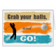 この笑わされるデザインはゴルファー用だ。文字読「ボールを掴んで行け!」 選カスタマイズ択した任意の背景色に個人メッセージを内部に追加。明るいブラシストロークの背景にゴルファーのシルエットとズーミング色彩の鮮やかのゴルフボールが仕上げtouchである。