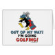 私の方法から、私はゴルフをすることに行っています! -どこでもゴルフをする恋人およびゴルファーはこのおもしろいで、ユーモアのあるなことわざを愛します。 ゴルフバッグを運んでいるペンギンのイメージを使って。