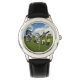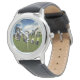 ゴルフコースロゴ、キッズブラックレザーウォッチ 腕時計