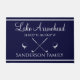 ゴルフボールとクラブゴルファーの装飾 |可愛いネイビーブルーと白の書式あなたの湖の名前、あなたの家族の名前、マップ座標。レイクモダンハウス,ブラシスクリプト,マップ座標,緯度の経度,