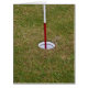 フラッグスティックと緑のゴ赤と白ルフホール。写真。