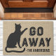 おもしろいトレンディーGo Cat遠くにドーモダンマとフェイクBurlap。黒カスタムいタイポグラフィフォントに「ゴー遠くに書」とカッコいいいうデザイン。このおもしろい猫好きドアマットは必ず出会う客を喜ばせる。