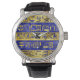 ゴールデンエジプト絵文字パターン青石 腕時計