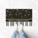 金ゴールドと黒いストリップを付けエレガントて、黒い背景にピアノのキーボードと金色の音符を搭載したピアノ奏者またはミュージシャンのためのデザインを備えたウェルカムマットユニークで、任意の大事な行事のための音楽テーマのギフトを作成するために選択の名前を追加しまパーソナライズされたす