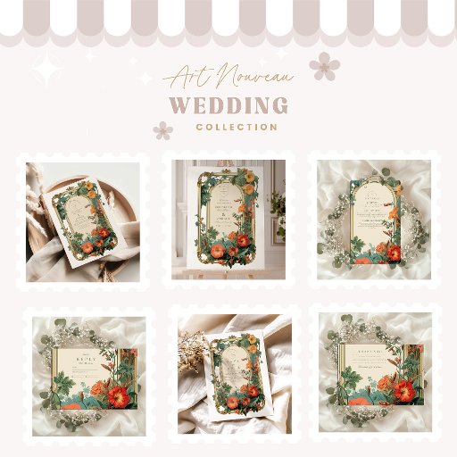 金色の結婚ヴィンテージで囲まれ縁ど、赤やオレンジ、桃の色の夏の花模様の豊かなカスケードで飾られた印象的なデザイン。インスパイアクラシックの植物性イラストと19世紀のスタイル華美を用いて、この作品は優雅さと自然な振動を融合し、時代を超越した庭園や屋外お祝いに最適な作品しゃれているだ。
