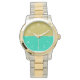 時計は機能的でファッショナブルである。黄金のサンセットウォーターズは、クラシックの白い数字をアクアと金ゴールドのデュアルカラー顔に搭載。クラシックの優雅さは今までになく明らかにされていない。