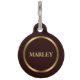 茶色エレガントモノグラムのの背景の上に金属金色の円を描く。もう一方には、金ゴールドの背景に名前と電話番号が表示される