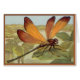 葉の上に休む素晴らしいヴィンテージトンボ。昆虫は金ゴールドと茶色の色調を持ち、背景には水とライパードの沼を示している。