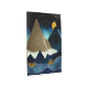 色と質感ユニークを持つ抽象芸術の風景は、青、金ゴールド、シアン、黄色の色合いで白熱[赤熱]光を放つ、登山者と月の光と夜の山のシーンを示す。