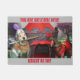 このドアマットはゴールデン・レトリバーを装甲の騎士として、剣を持つ。彼は馬を持って城の隣に座っている。文字読「ようこそ。騎士か日か」