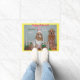 このドアマットは、ニンジン畑でニンジンを摘むゴールデンレトリバーの女の子とゴールデンレトリバーの食べウサギのニンジンを特徴とする。「ホッ読ピー・イースター!」というメッセージ。
