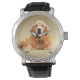ゴールデンレトリバー犬の水の色絵画のアートの腕時計。