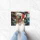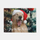 今年のホリデーシーズンは、この可愛いドールマットでお客様をお迎えしよう!デザインには、クリスマスツリーの前にサンタハットを着たハッピーゴールデンレトリバー犬の写真が展示されている。文字読「世界への喜び」。