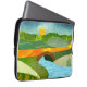 抽象芸術の風景は、丘と色と質感の転が黄金の道を持つ石の橋の下に行くはっきりした川のシーン。
