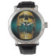 金ゴールドスカル時計デザイン。 – 叫びスカル時計ファッションアクセサリー男性へまたは女性。人間のスカルと金ゴールド歯を組み合わせた黒とティール(緑がかった色)の配色。時計の顔色を試して好みに合わせる。ゴシッ素晴らしクスカルを愛する人のための贈り物アイディア。悲鳴のスカルは金ゴールド金属歯で。注:このデザインでは実際の金ゴールドメタリックは使用されない。さまざまな時計バンドや顔オプションから選択する多くの時計のスタイルを選ぶ。