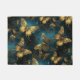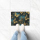 キラキラエレガント輝く黄金色の色合いと青の蝶パターンを持つドア白熱[赤熱]光を放つマット。