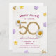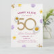 ゴールドの花模様があしらわれた50歳の誕生日パーティーの招待状