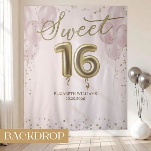 ゴールドフォイルスウィート16誕生日バルーズピンク 招待状
